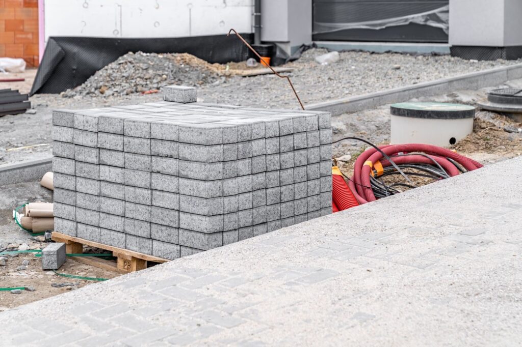 Alt-text: Pile of concrete blocks ready for use in ongoing construction work